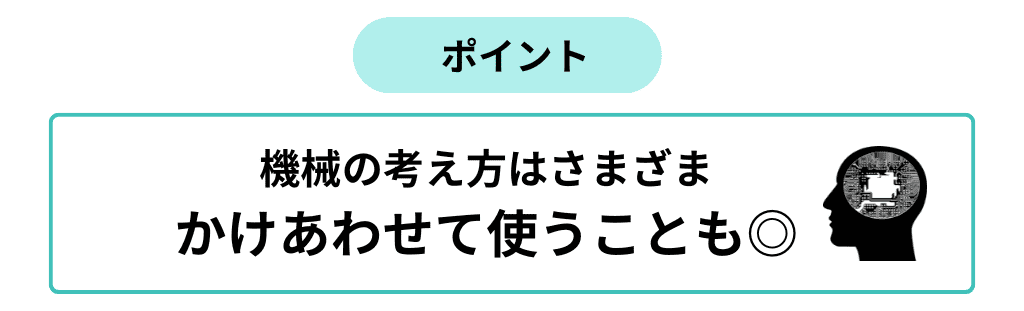 機械が学んで考えることがセットになったものが機械学習であり、どちらか1つで成り立つわけではないということですね。(この軸が理解を深めるうえで非常に重要なポイントになります)