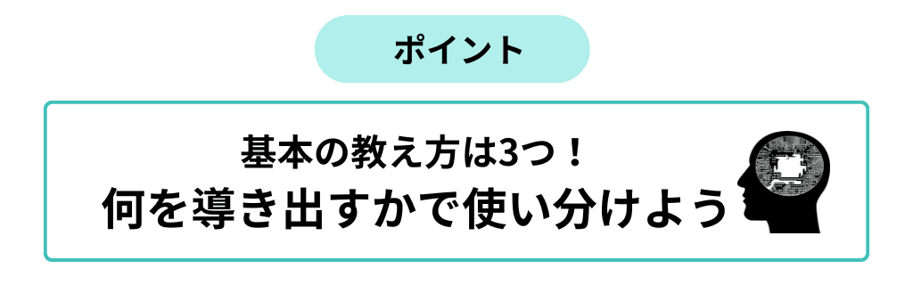 ※以下は、機械にどうやって知識を教えるかという「教え方」の種類になります。なので、学校の先生を思い浮かべていただけると分かりやすいかもしれません。