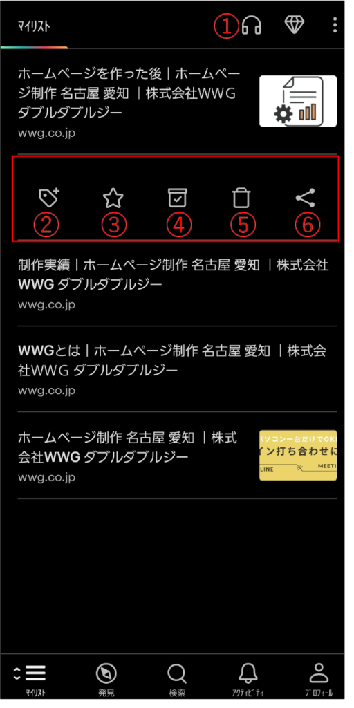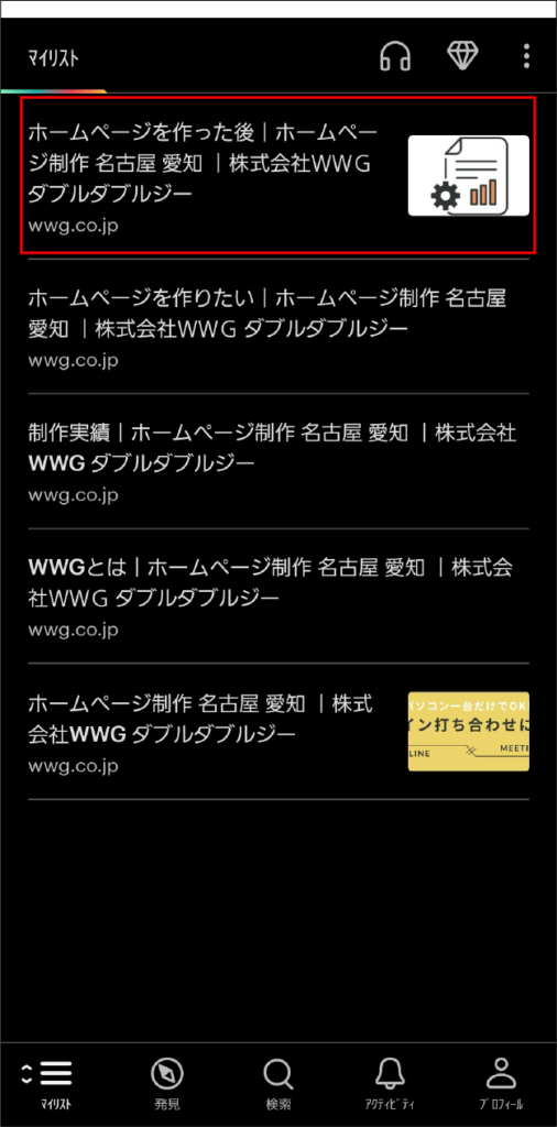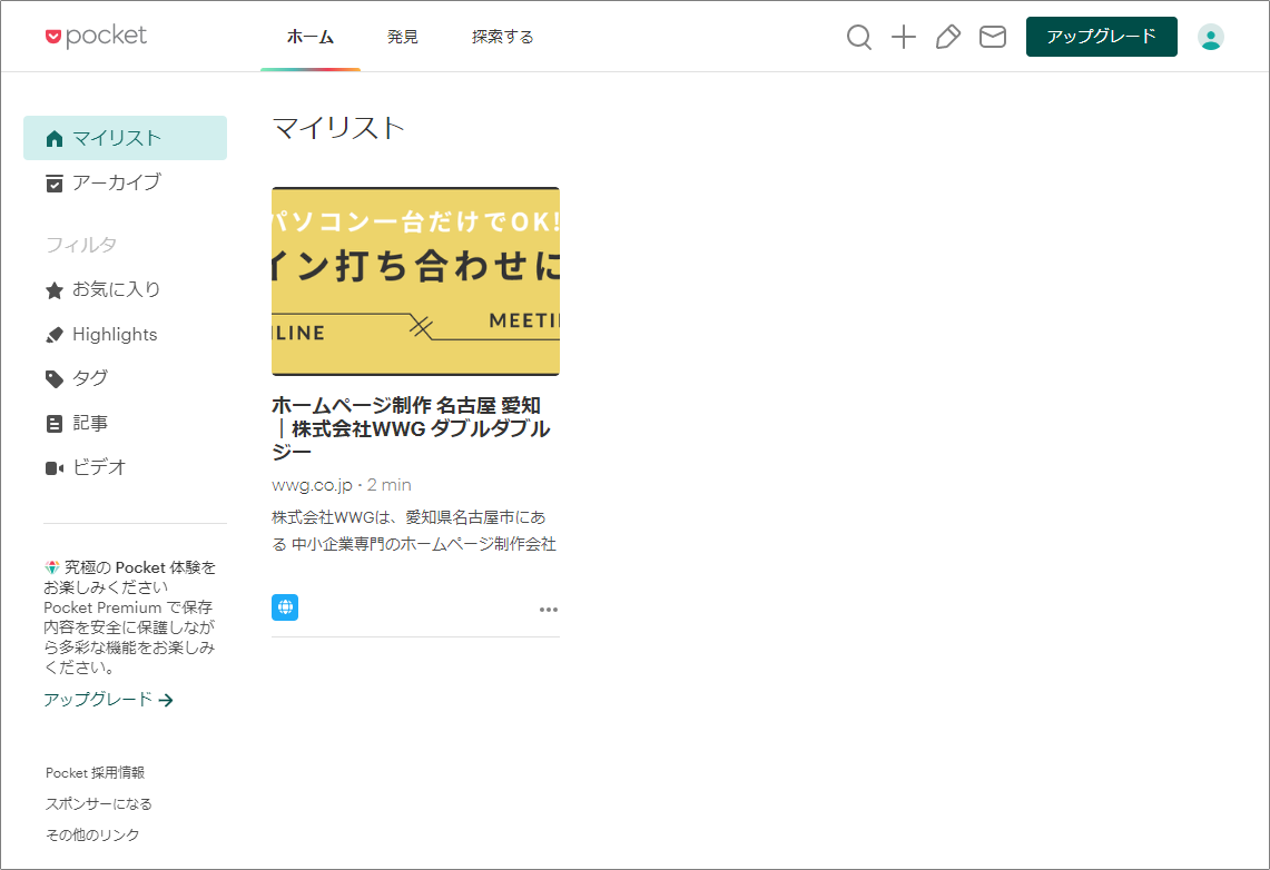 左側の「マイリスト」タブから保存した記事を見ることができます。