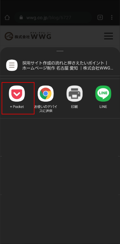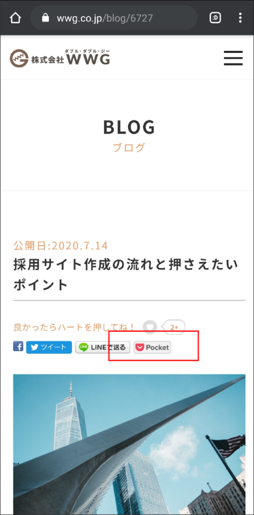 記事のSNSボタンの中にPocketが入っている場合