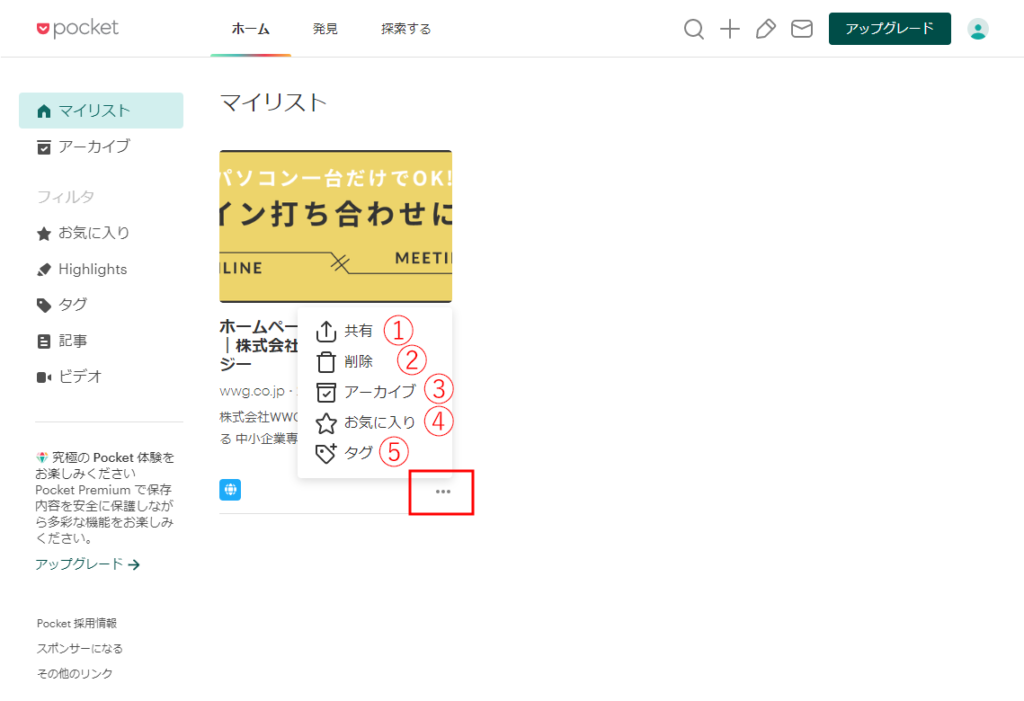 記事の右下の「…」をクリックすると、各機能を使うことができます。