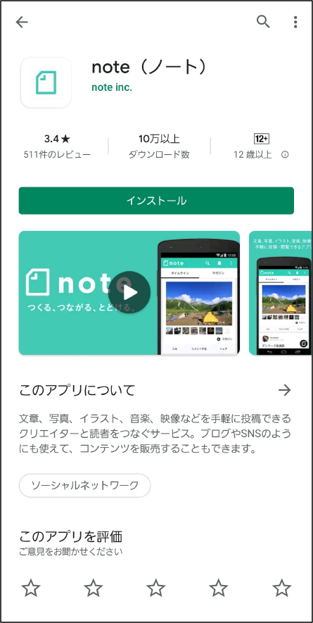 Google Playから「note」を検索しインストールを押します
