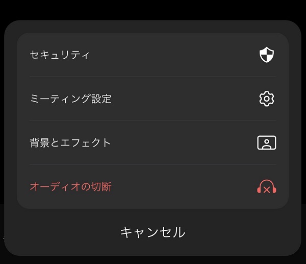 出てきたメニュー項目から「オーディオの切断」を選べば、相手の会話がオフになります。