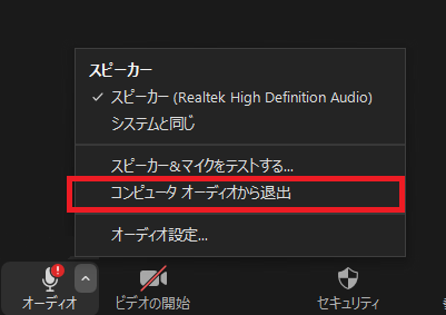 出てきたメニュー項目の中から「コンピュータオーディオから退出」を選べば完了です!