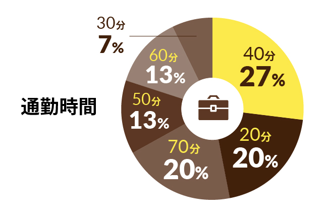 通勤時間は20~40分が約半数を占める結果となりました。