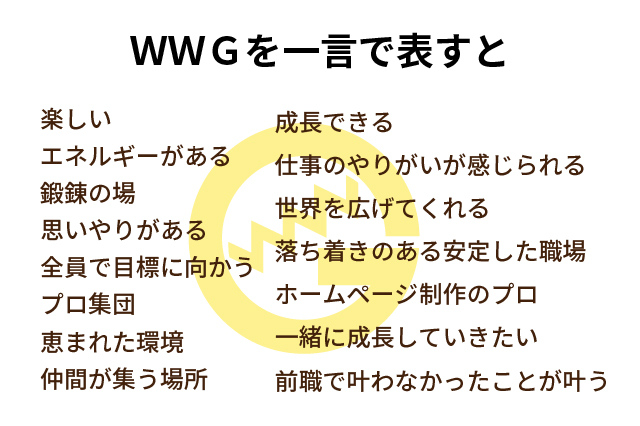 WWGの採用特設サイト内でも、社員アンケートの内容を掲載しています。