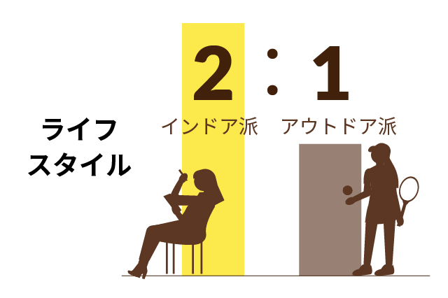 当社は、男女半々、20代の若い方が多く、クリエイター職多数なこともあってインドア派がたくさんいることもわかります。