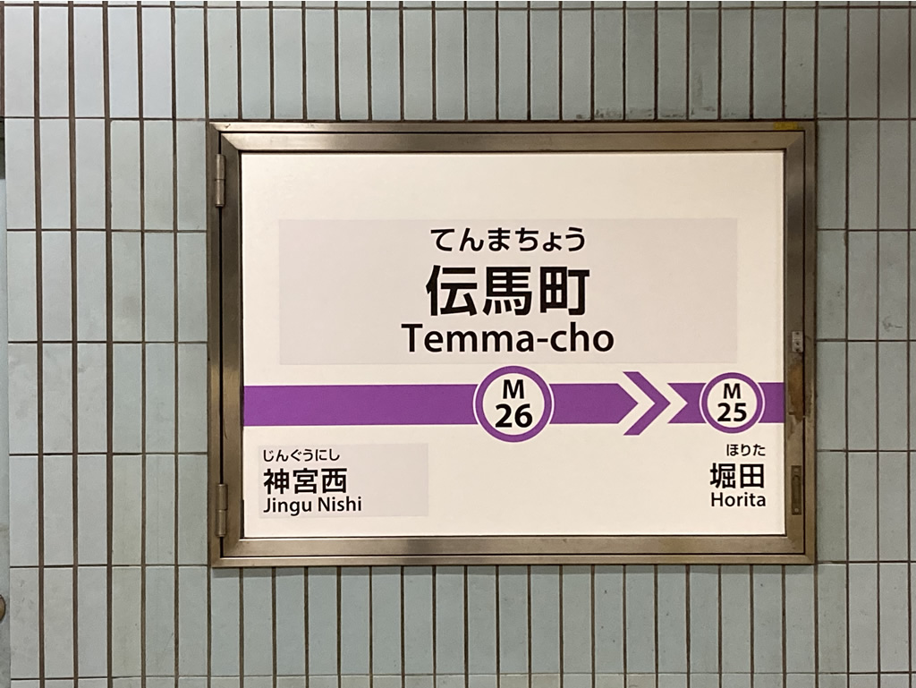 ちなみに、熱田神宮伝馬町、熱田神宮西ともに、栄駅から名城線に乗り換えていく場合、電光掲示板に「名城線左回り」と表示されている電車に乗るようにしてください。