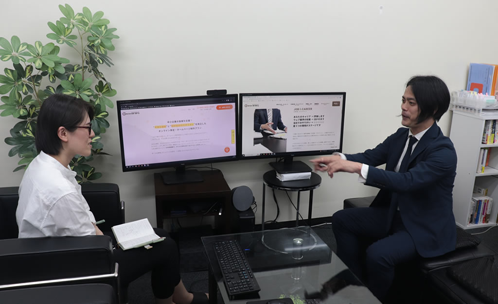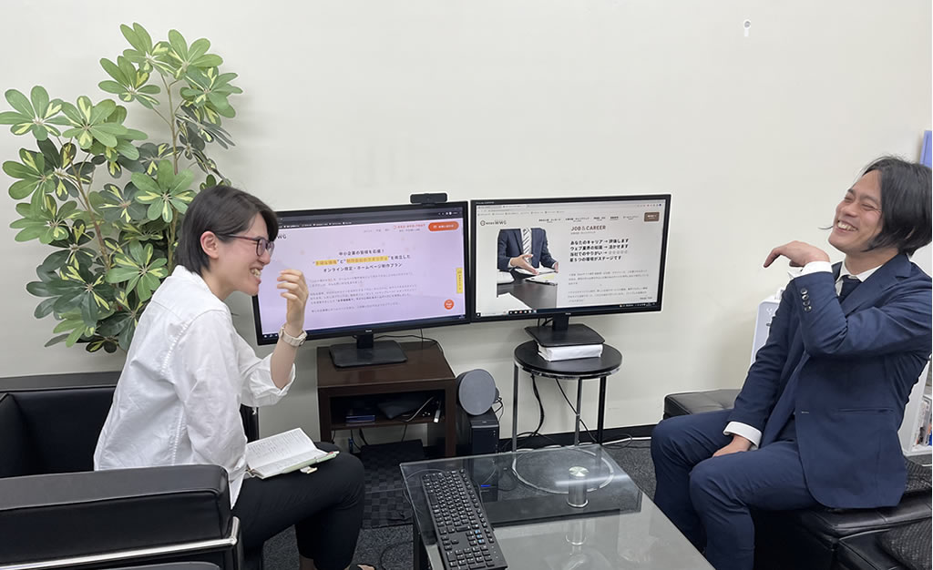 どうせなら撮影した写真を採用サイトにも使いたいと思い、打ち合わせ中のスタッフに突撃、撮影させてもらいました。