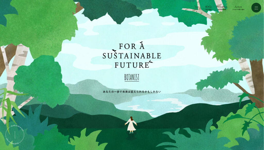 環境に関わるサイトにおける定番要素「ナチュラルなイラスト」「アースカラー」「ゆったりとした動き」は、やりつくされていて既視感があったり、新鮮味が欠けてしまうことがほとんど。ですが、これらの要素をなぞりつつ奇抜な表現にも走らず、正攻法でありながら、新しいと思わせてしまうのが素晴らしいです。