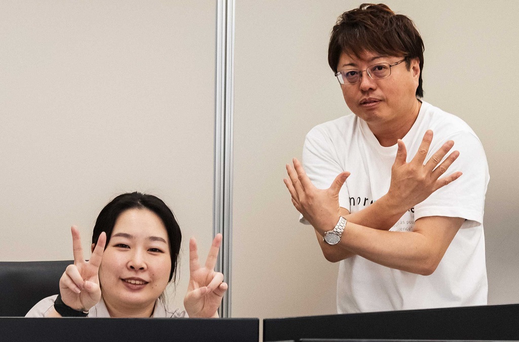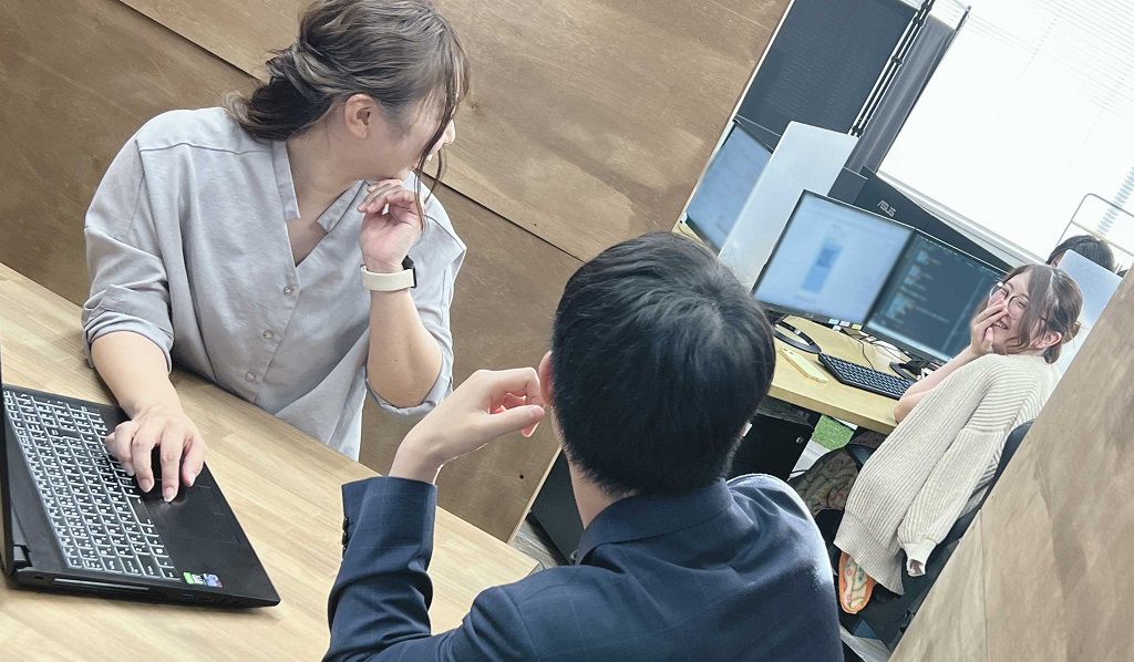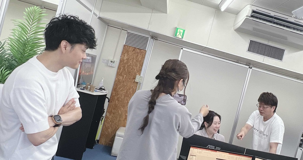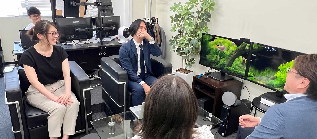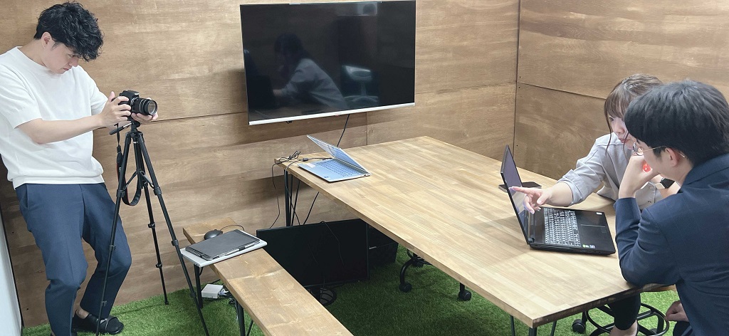 社内のスタッフ同士で打ち合わせをしているシチュエーション。WWG内でもこういう光景が日常茶飯事です。慣れていることもあって、すごく自然なカットになりました。