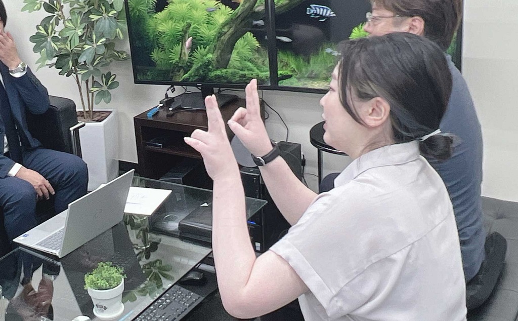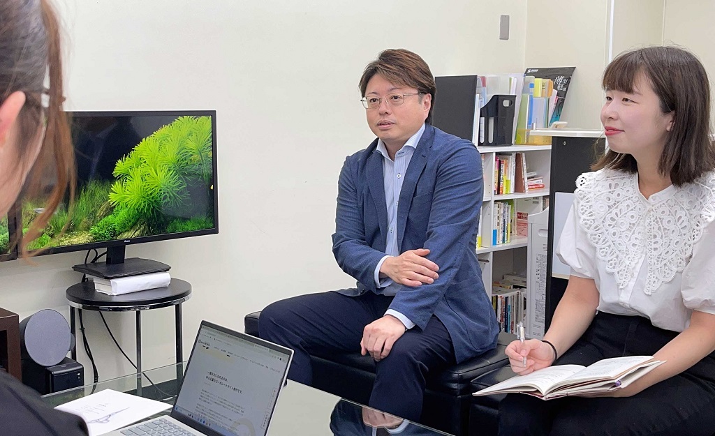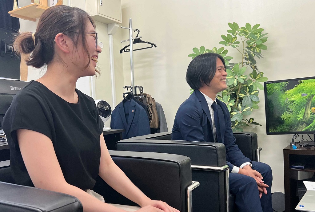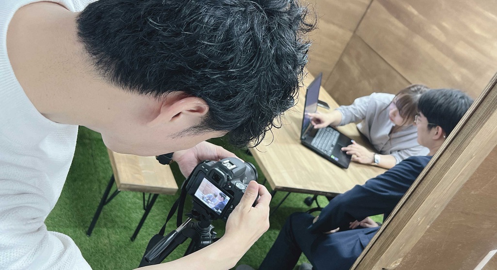 営業職などでは、お客様と商談をしている風のカットを撮ることも多いです。今回はスタッフにお客様役をやってもらいました。