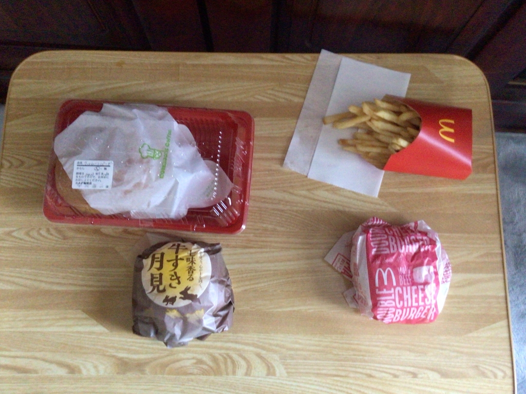 月見バーガーだけでなく、ポテトとダブルチーズバーガーも買ってしまいました。