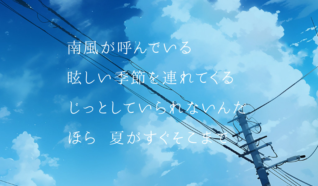 爽やかな画像に軽やかな文字。まるで空模様を表したかのようなフォントです。