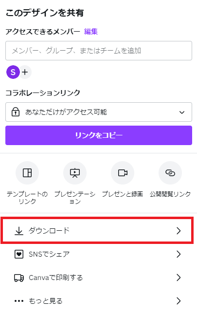 下のほうにある「ダウンロード」を押すと、保存形式を選ぶウィンドウに変わります。