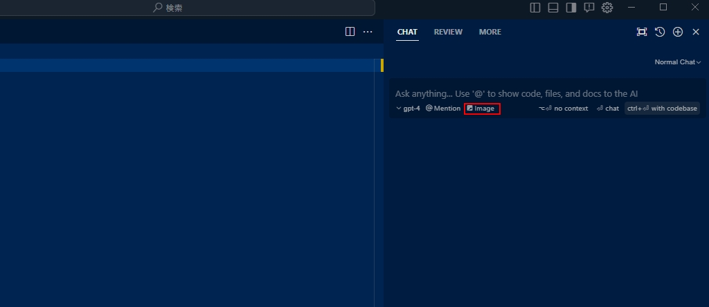 また読み込みたい画像をCHATの辺りにドラッグ&ドロップをするか、赤線で囲ったImageより画像をアップロードすれば画像を読み込んでくれます。
