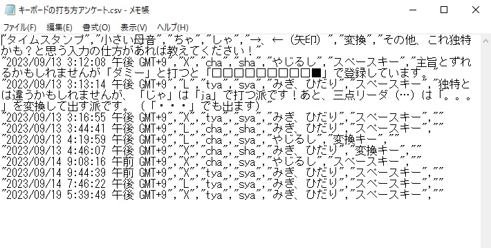 今回画像の例に使用するのは、以前こちらの記事を書くにあたって作成したGoogleフォームの回答結果です。