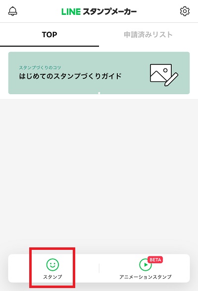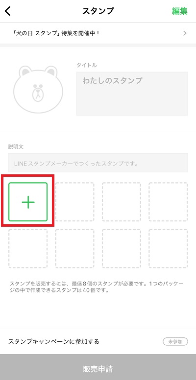 緑色の[+]を押せば、スタンプの作成画面に進みます。
