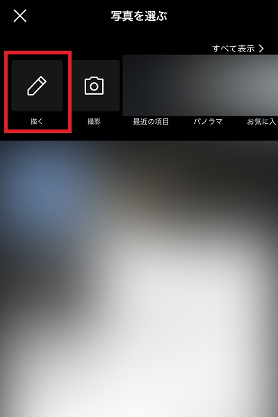 画像を選んで加工してから文字を入れることもできますが、画像を選ばずに「描く」を押せばそのままスタンプ作成画面に進みます。