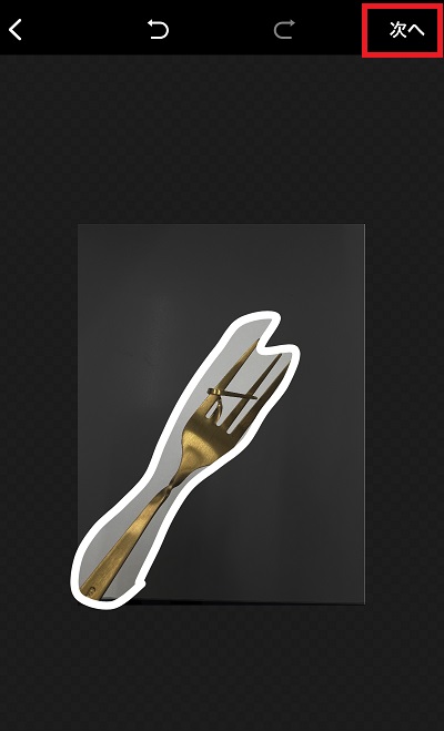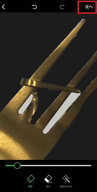 めちゃくちゃきれいに切り抜いてくれました!最高!ばっちりです!満足いく形にできたら、右上の「次へ」を押します。