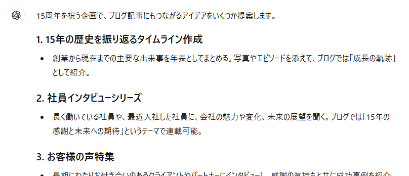 <ChatGPTによる周年記念企画アイデア①>