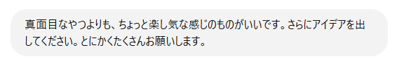 「とにかくたくさん」という指示を汲んで、なんと17個もアイデアを出してくれました。