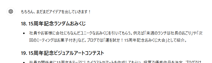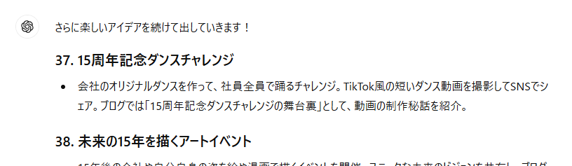 <ChatGPTによる周年記念企画アイデア②>