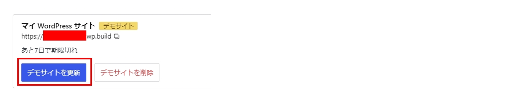 ↑のとおりデモサイトの有効期限は発行後7日間なのですが、デモサイトを更新することで期限を延ばすことができるようです。超安心で便利です。