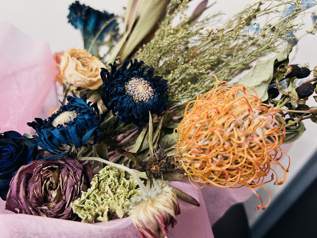 その後は、早崎さんの「すごくうれしかった~!ドライフラワーにして、できるだけ長く保存したいなあ…」の一言により、企画部チームでドライフラワーをつくることに。