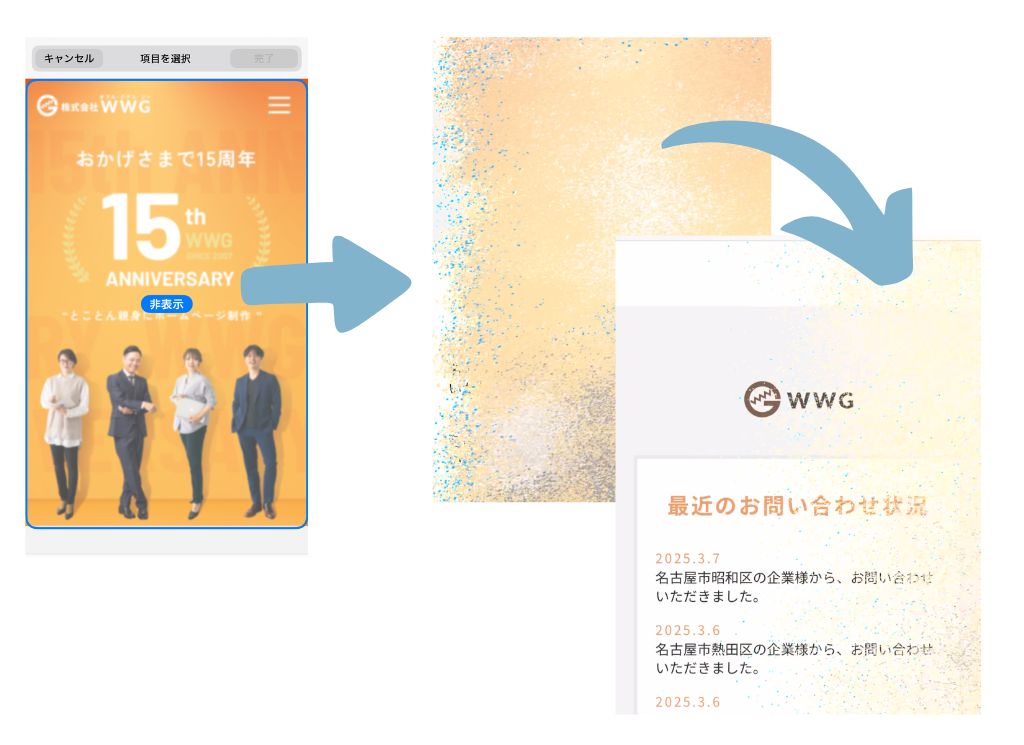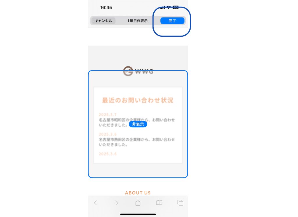 ③ページ内の非表示にしたい部分をタップ