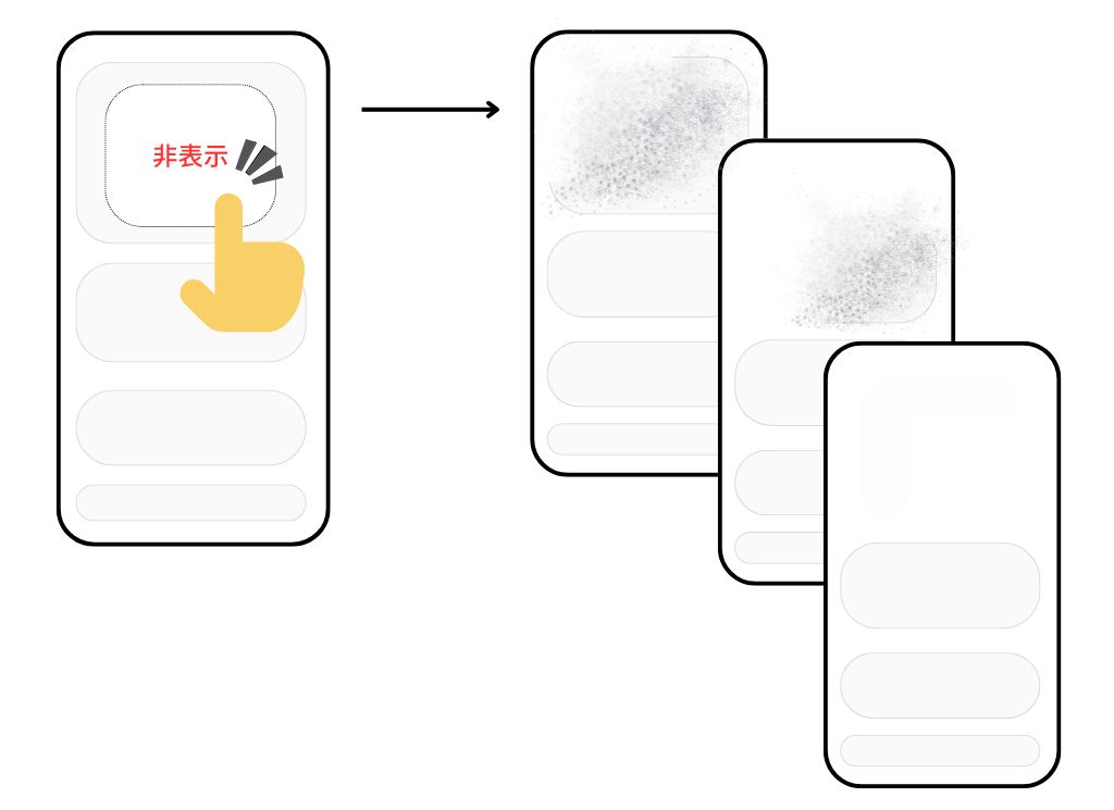 まず、タップした項目をどこまで非表示にするか、選択範囲は自動で決定されるので自分ではコントロールできません。