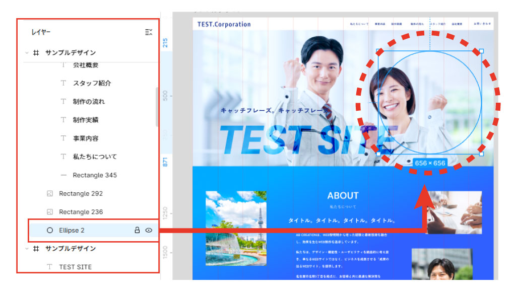 選択したいオブジェクトの前面にあるオブジェクトをロックして、背面の要素をクリックできるようにする方法です。