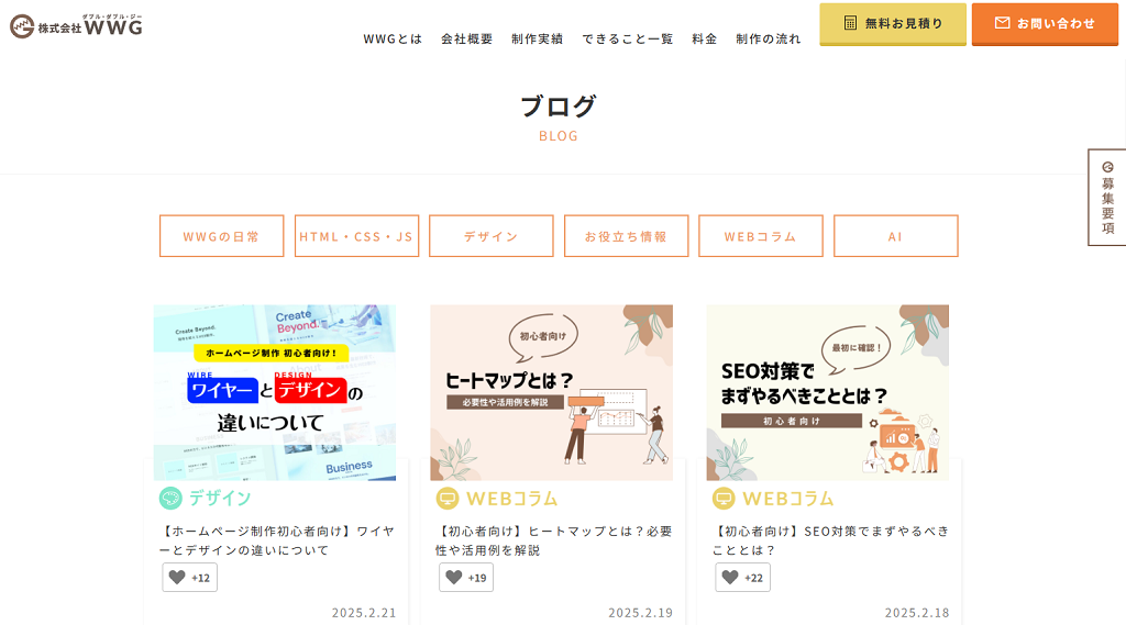 カテゴリが「お役立ち情報」「クリエイターラボ」「WWGの人達」の3種類になりました。以前は「WEBコラム」「デザイン」といった、内容によってカテゴリを分ける形にしていました。