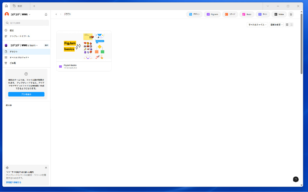 FigmaはAdobeのIllustratorやPhotoshopとは違いブラウザで操作できる画期的なツールであるため特別にソフトを購入しなくても使える便利なツールです。