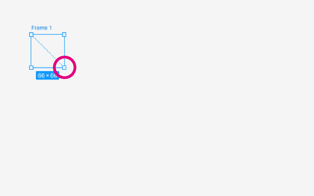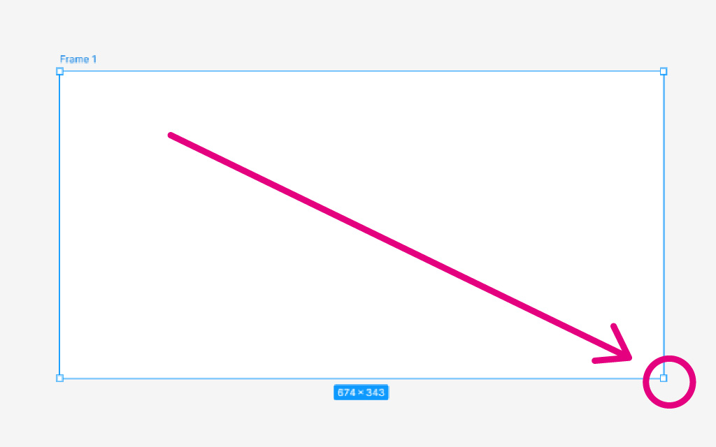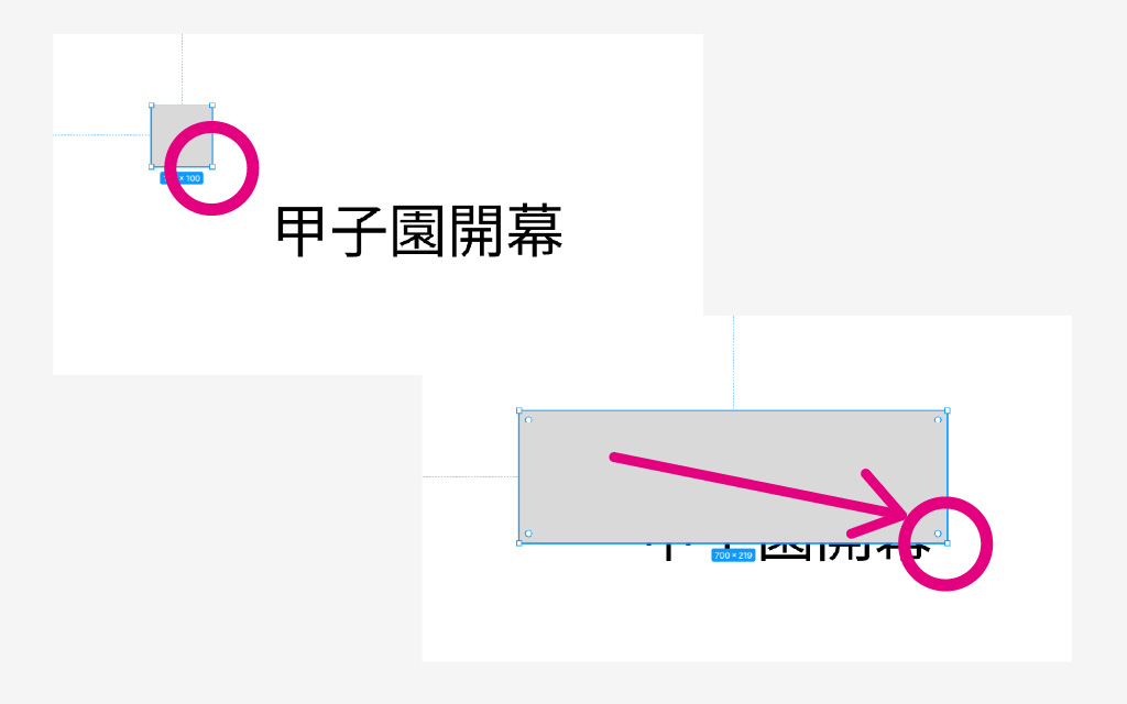 何もない場所をクリックすると小さな四角が出てきます。これを 1 の「フレーム」と同じ要領で右下に伸ばしてください。