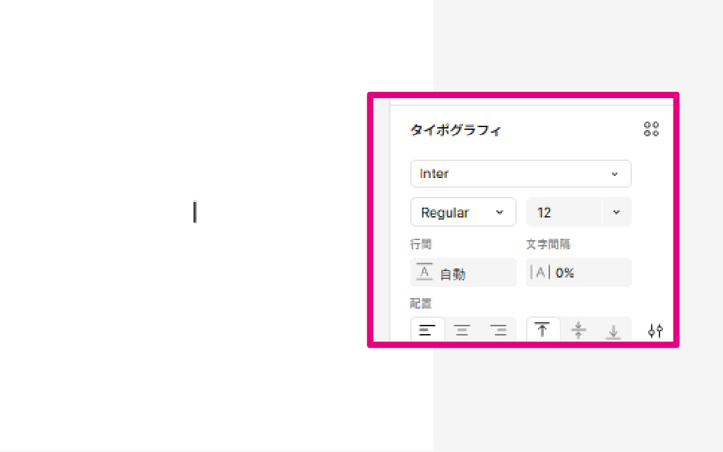 ※ちなみに初期設定は、Interと書体のRegularという太さで、12ポイントのサイズになっています。