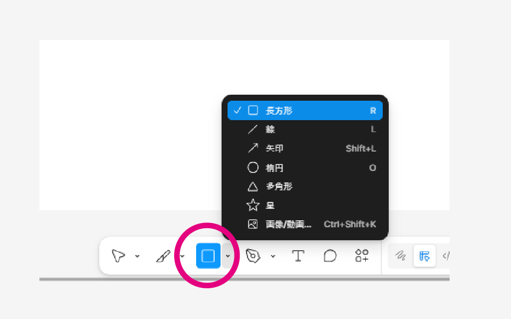 すると長方形や線など図形が選べるようにあります。今回は一番上の「長方形」を選択します。