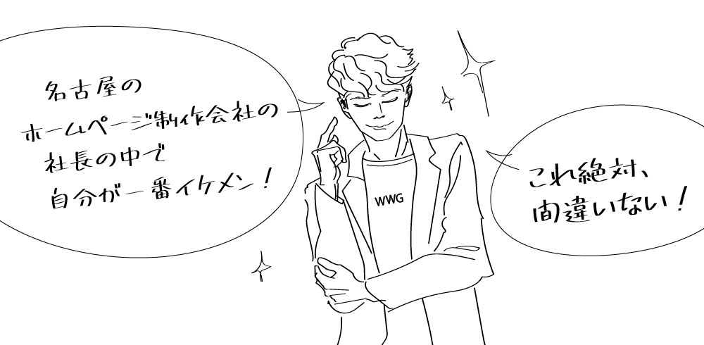 スタッフみんなで「社長の顔面なら、WWGは名古屋のどこの会社にも負けない」と言うものだから、早崎中年もノリノリです。(あくまで社内見解)