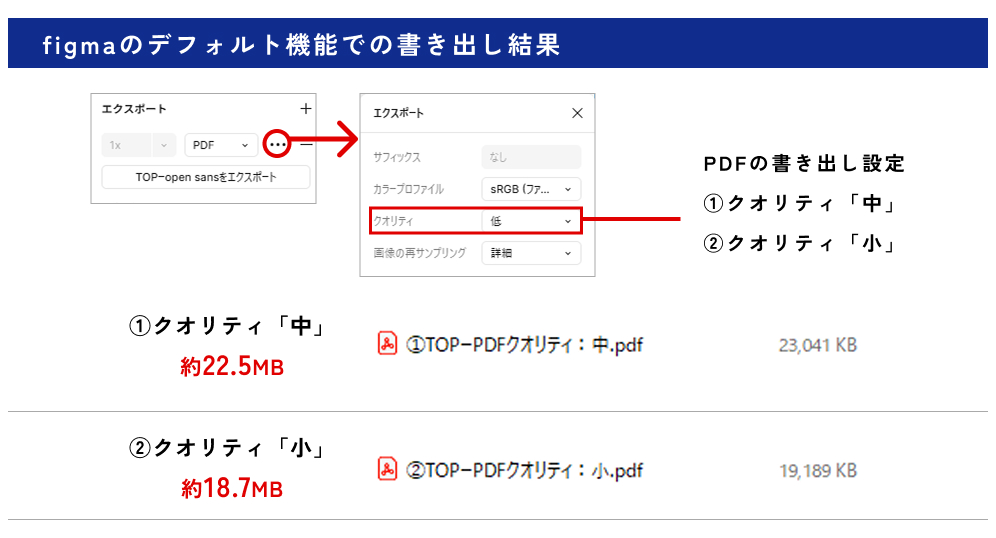 - FigmaのPDF書き出し設定(クオリティ中や小)を調整