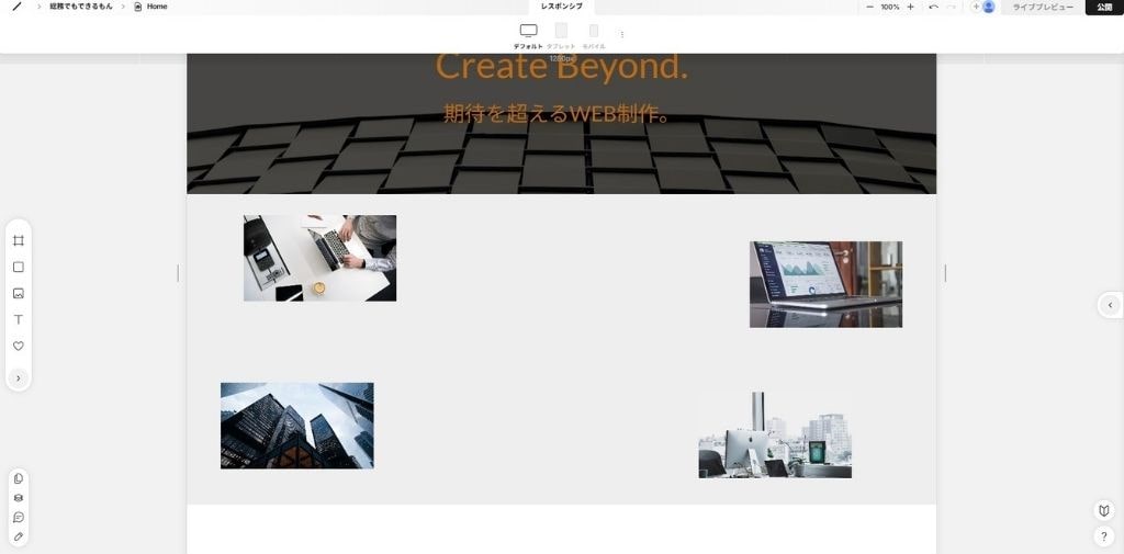 要素をドラッグアンドドロップしたらレイアウトが崩れてしまったり、普通のテキストだと思ったらCMSだったり、テキストボックスを消そうとしたらセクションごと消えたり、最後まで画像が変えられなかったりします。(ファーストビューの背景画像、結局どうやったら変えられるんだろう)