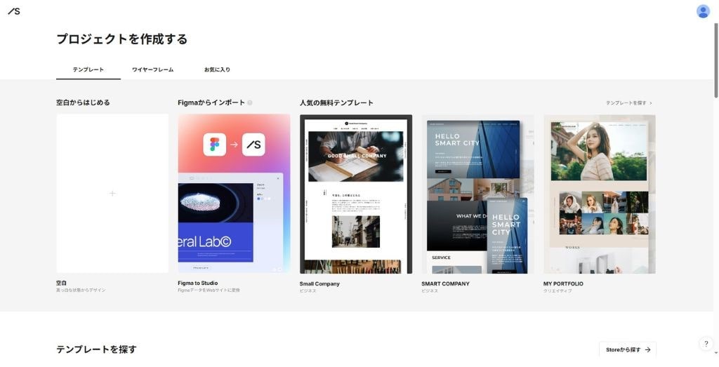 「新しいサイトを作成」を選択しましたが、真っ白な状態からテンプレート、Figmaからインポートまで選択できる画面になりました。